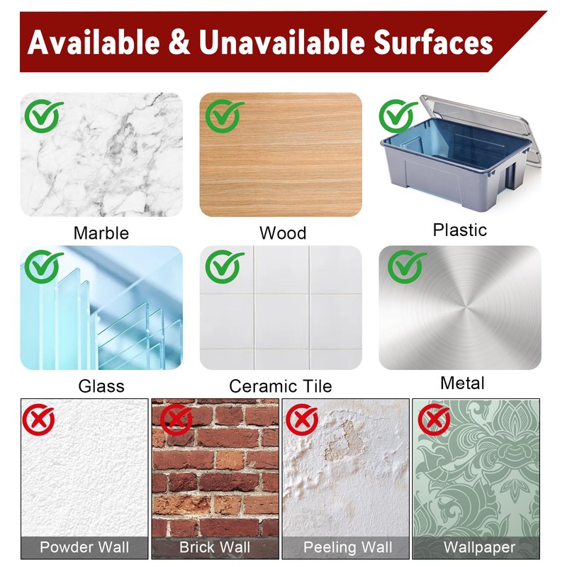 - Einfach zu Verwenden: Reinigen Sie zuerst die Oberfläche, das schutzfolie auf der Rückseite abziehen, auf den Glatte und trockene Oberfläche kleben, Kein Bohren, Einfach zu bedienen, spart Zeit und Mühe