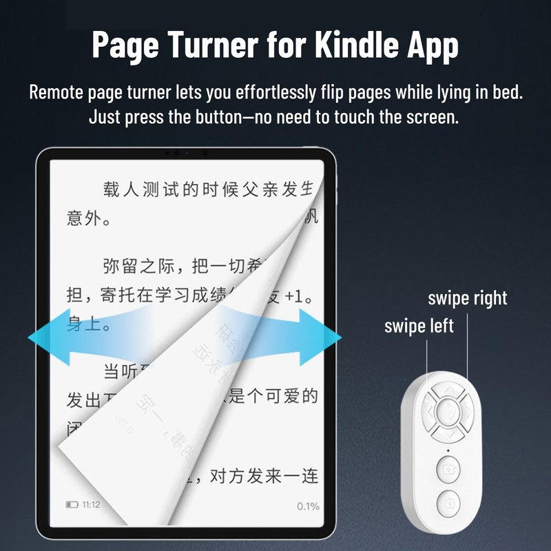 TikTok Control Remoto App Page Turner, 32.8ft Bluetooth Cámara Inalámbrica Obturador Botón Selfie Clicker, Control Remoto Recargable para Teléfono Tablet Novelas Fotos Videos