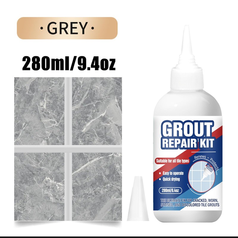 Tile Grout Repair, 280ml/9.4oz Fast Drying Grout Repair Kit, Grout Filler Tube Repair Kit, Tile Grout Paint, Grout Sealer Restore and Renew Bathroom Floor, Tile Gaps, Joints, Lines (Grey)