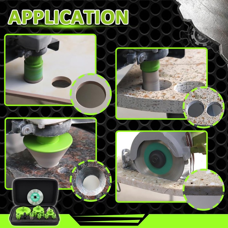 - 【Wide Compatibility】Diamond drill bit set for Wet/Dry Drilling/Shaping/Enlaging/Cutting on various materials,like Porcelain Ceramic Tile Granite Marble Stone; Diamond Blade for cutting and Grinding Tile Granite etc.Powerful and portable diamond tool set.