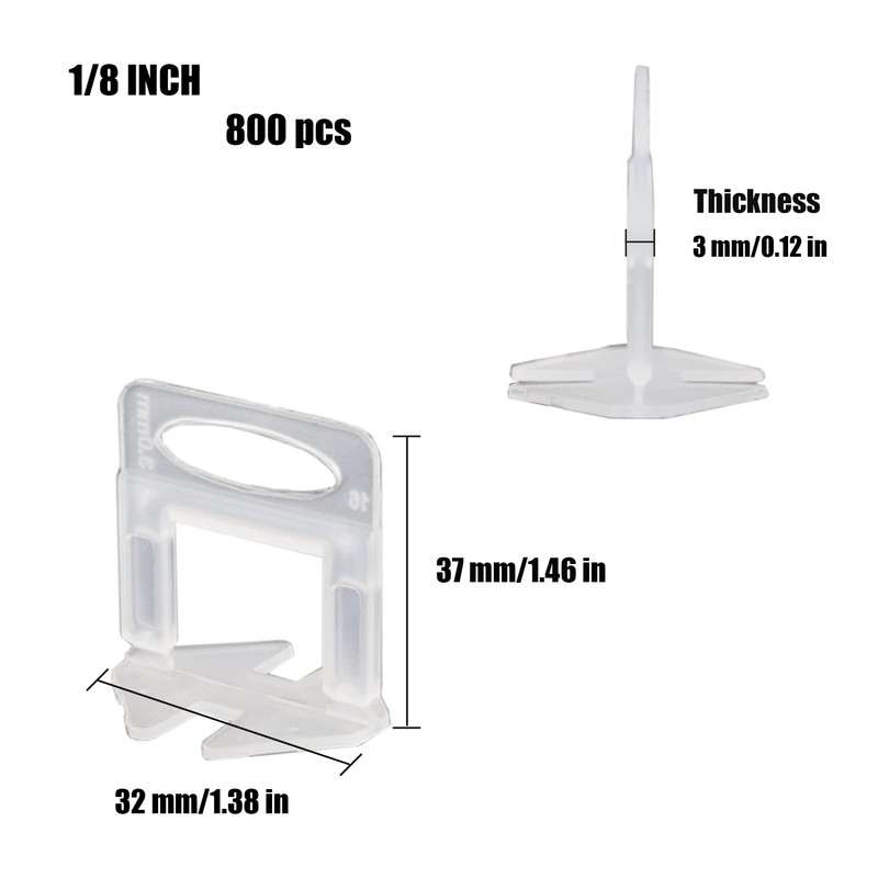Tile Leveling System Clips 1/8 Inch, 800 Piece DIY Tiles Leveler Spacers, Tile Leveling System for Professional Ceramic Tile Installation