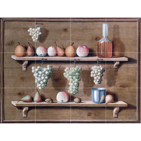 Tile Mural Apples and Nuts and Bunches of Grapes by Jean Valette-Falgores Trompe-L'Oeil Kitchen Bathroom Shower Wall Backsplash Splashback 4x3 4" Marble, Matte