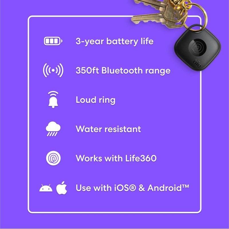 • USE WITH LIFE360: Add your Tiles to Life360 — a top family connection and safety app – to see everything and everyone on the same map