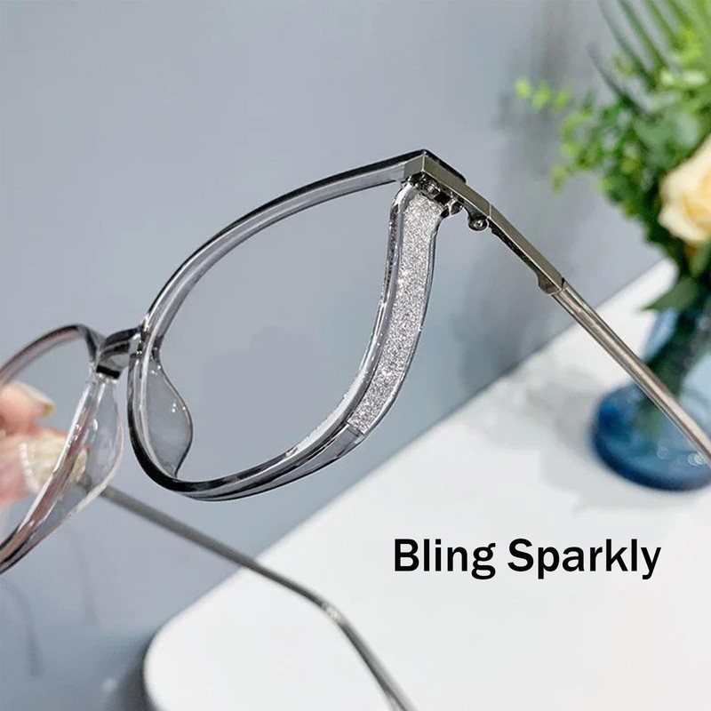 Tiliraiy Beautyfeii Reading Glasses - Bf Bling Bifocal Reading Glasses Women's Fashion Large Frame Round Sparkly Anti-Blue Light (Black, 2.5)