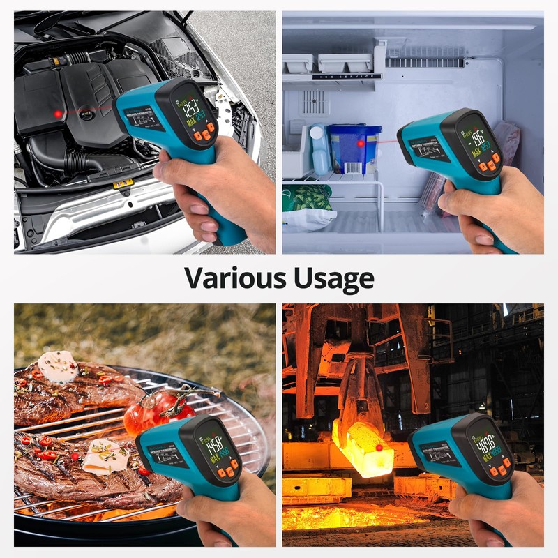 - Various UsageThis Infrared thermometer can be used both daily and industrial temperature measurement, measure surface temperature ranging from -58H~1112H / -50~600, temperature unit changed through the /H selection button.You can measure engine, electrical equipment, furnaces and others measurements.
