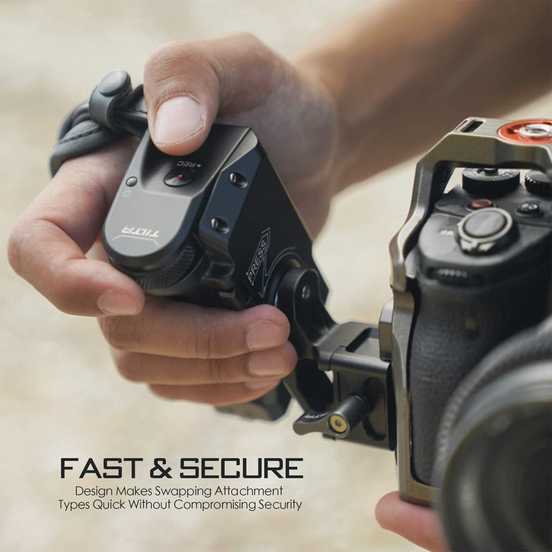 This attachment allows you to adapt any of the Tiltaing Advanced Side Handles to use on half and full Tiltaing Camera Cages compatible with a7SIII, S5 and BGH1.
