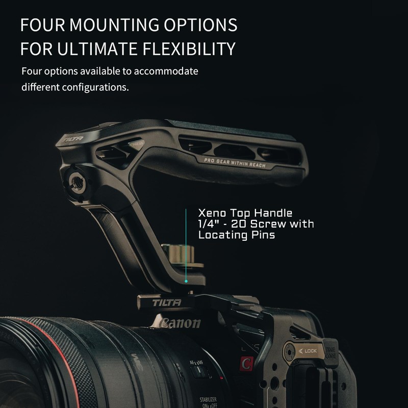The Xeno Top Handle has multiple different mounting options, allowing it to be mounted to a variety of camera cages and systems.