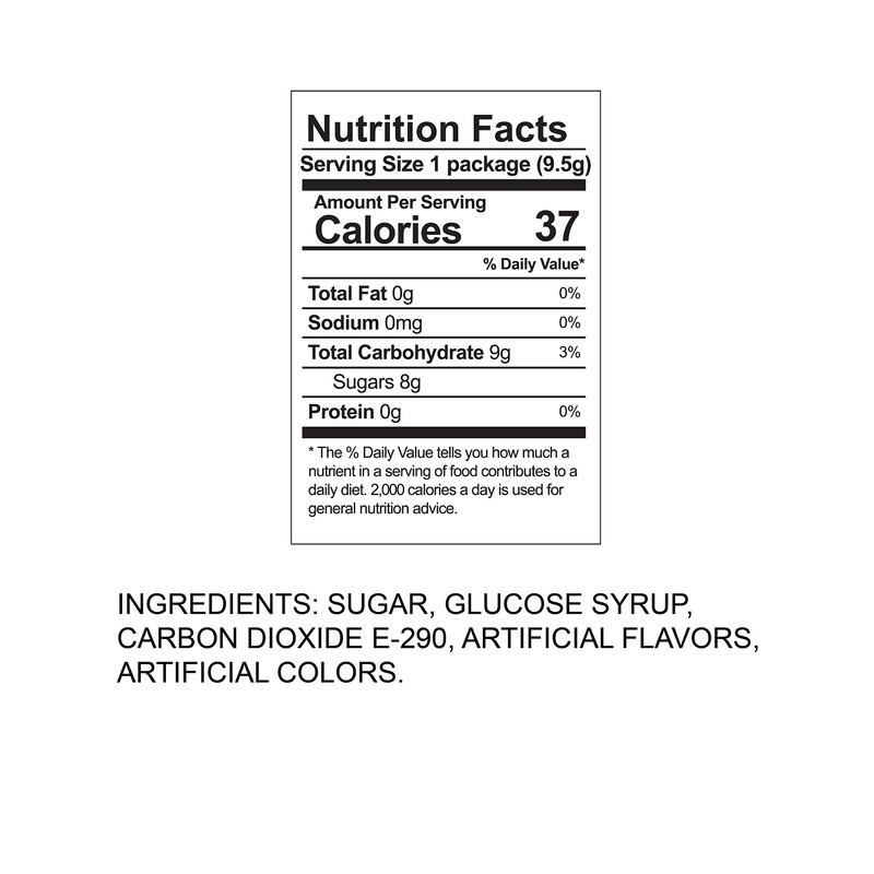 - 24 sachets Popping Candy with 🍉 Watermelon Flavor in a display box. Each sachets are 0.33 oz / 9.5 grams.
