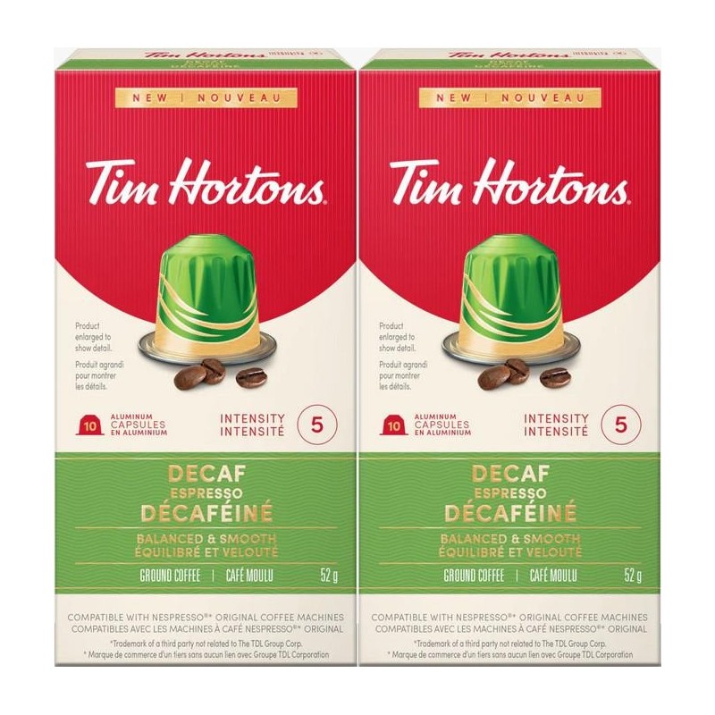 Tim Hortons Coffee Capsules Nespresso Espresso Decaf 10ct (2 Pack)