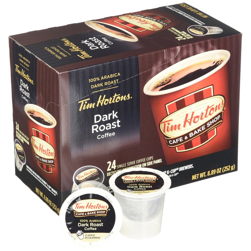 - Includes Tim Hortons Dark Roast Single Serve Coffee Cups, 96 Count (Packaging May Vary)