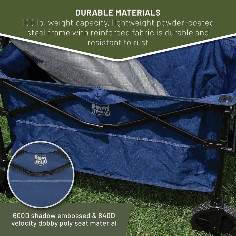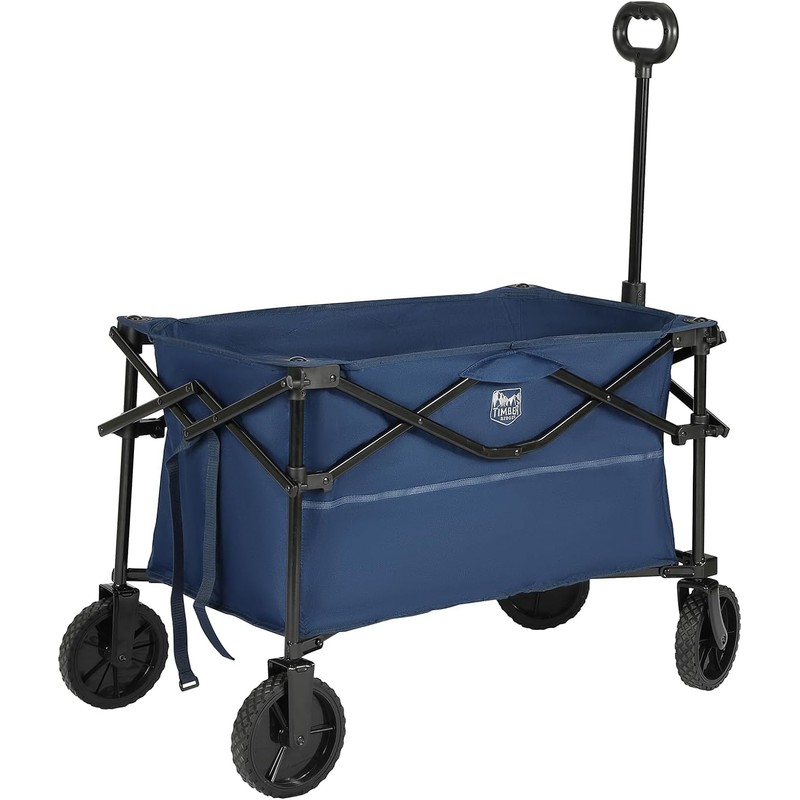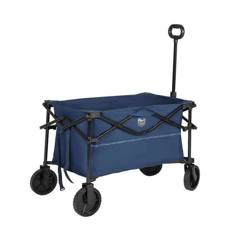 TIMBER RIDGE Folding Collapsible Wagon, Utility Push Pull Beach Wagon with All-Terrain Universal Wheels, Heavy Duty Foldable Grocery Cart for Outdoor Garden Camping Shopping, Holds 225 lbs, Dark Blue