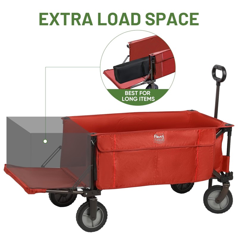 - HIGH-CAPACITY WAGON: A sizeable outdoor wagon with a deep basket and a fold-down tailgate to accommodate longer and larger items
