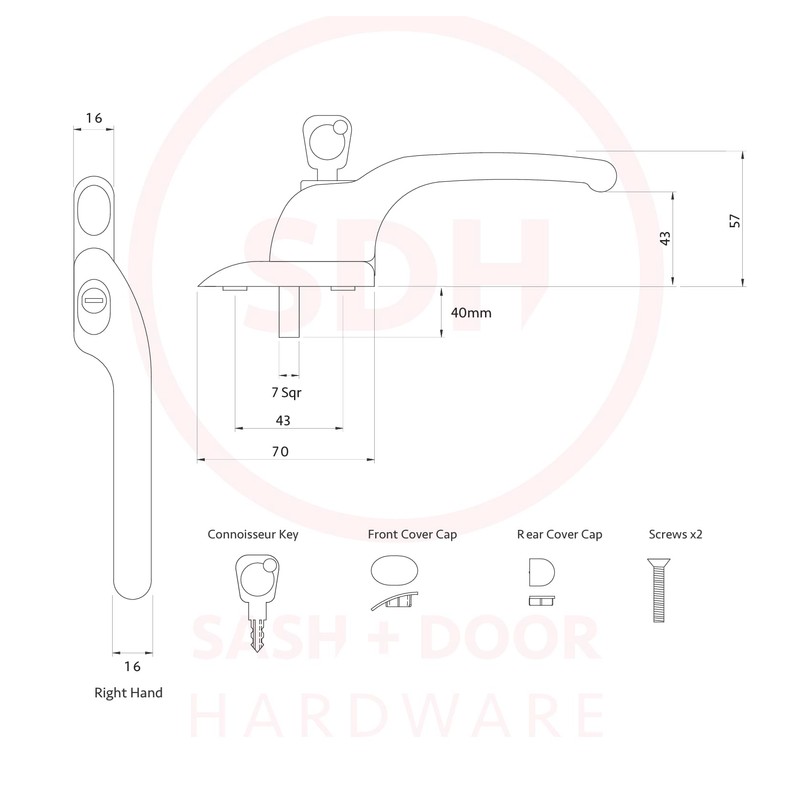 - Its 7mm square spindle makes it compatible with all popular spindle drive shootbolts and espagnolette bolts , whilst a 40mm spindle length ensures quick fitting on most window profiles currently used in the UK