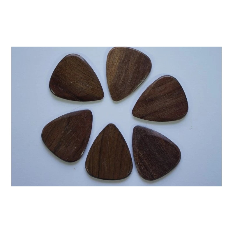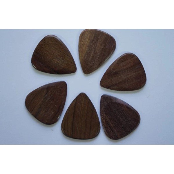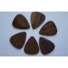 Indian Chestnut is a relatively open-grained wood that polishes to a smooth finish. The hardness ensures that it can withstand the rigors of electric guitar playing whilst it has slightly more warmth to the tone than Ebony.Indian Chestnut picks are CNC Milled from the very best quality wood then hand sanded and hand polished to give them their amazing shine and smoothness. Timber Tones unique shape is roughly based upon the classic 351 design, however they are 2.4mm thick where you hold them, chamfering down to 0.7mm at the playing tip.