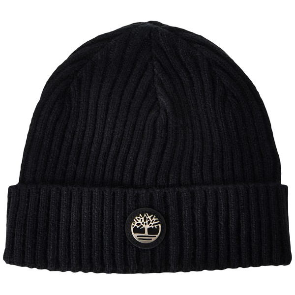 Timberland Men's Ribbed Watch Cap with Logo Plate, Black, One Size