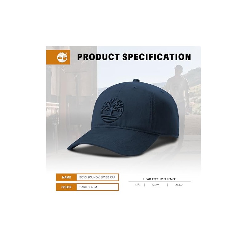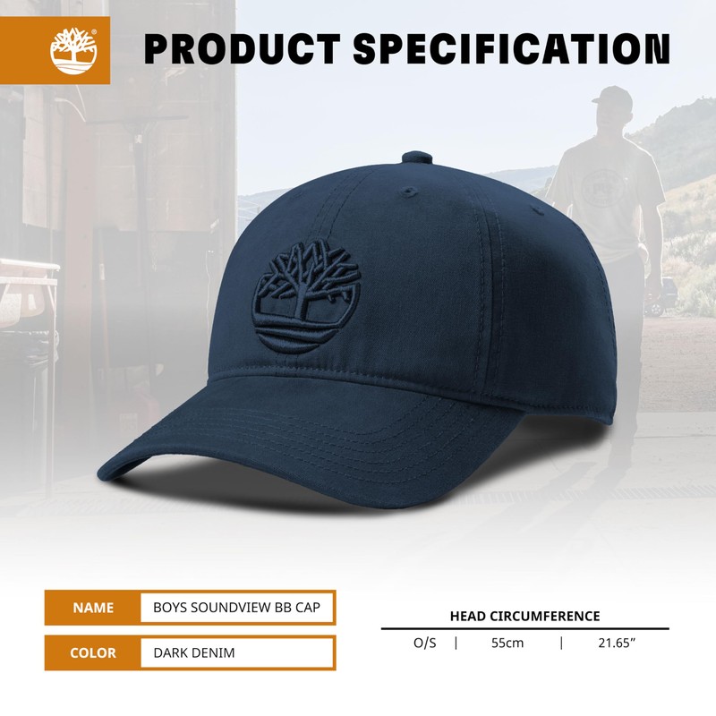 Timberland Soundview Navy Blue Baseball Cap for Boys 7-14, Cotton Canvas, Adjustable, Lightweight & Durable, One Size