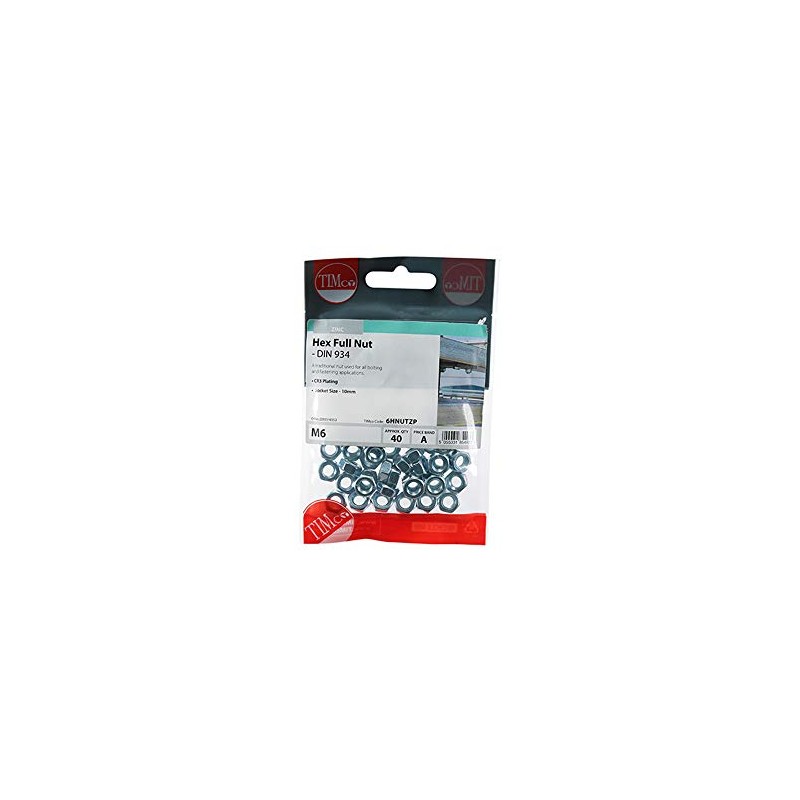 TIMco 6HNUTZP DIN 934 BZP Hex Nut M6 - Zinc (Pack of 40)