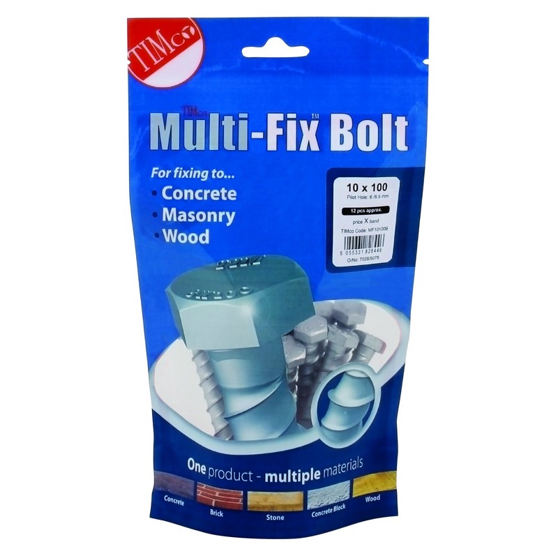 TIMco MF875B Multi-Fix Hex Head Bolt 8 x 75 - Micro Plating (Bag of 26), Silver
