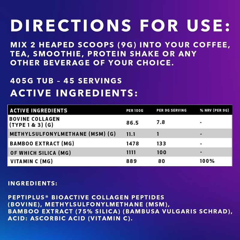 - Pharmaceutical Grade Methylsulfonylmethan (MSM) C So much more than just a collagen supplements powder our product also contains MSM which is a sulphur containing compound with high bioavailability. MSM provides the sulphur required for optimum Collagen & keratin production. MSM also has anti-inflammatory & antioxidant properties & has other benefits including relieving joint pain, joint care, enhancing exercise recovery, accelerating healing & improving skin health & appearance.