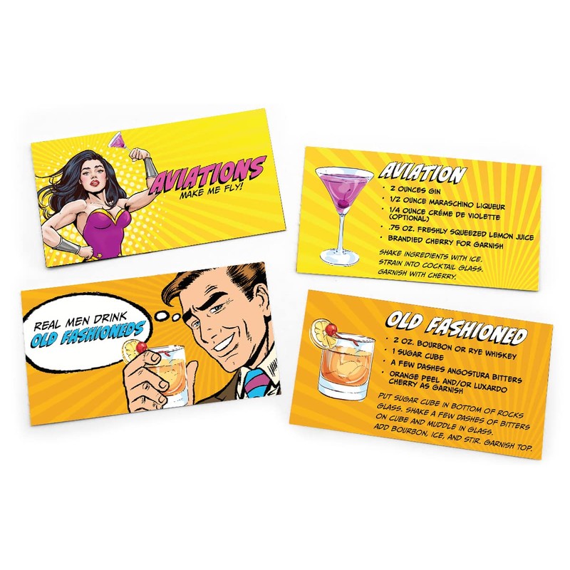 - Classic cocktail recipe Tear and Share cards. This matchbook style booklet containing 20 removable recipe note cards is sure to impress. Each card has a pop art illustration with a satirical phrase on the front and a cocktail recipe on the back. Tear one out and let them inspire your next gathering, or just at home to create a lively happy hour.