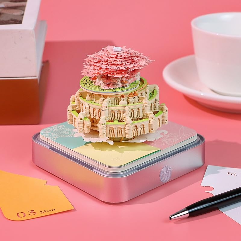 Time Piece Calendar 2025 with Lights, 3D Calendar 2025, DIY Tear-Away Timepiece Calendar, 3D Artsy Pads Pink Castle-shaped, 3D Memo Pad Paper Carving Art for Desktop Decor (Battery not included)