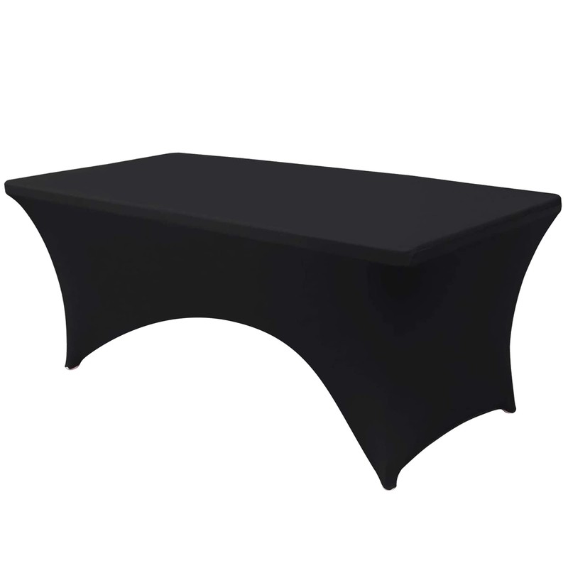 Time to Sparkle 8ft Stretch Spandex Table Cover for Rectangle Tables with Open Back - Universal Rectangular Fitted Tablecloth Protector for Wedding, Banquet and Party Black