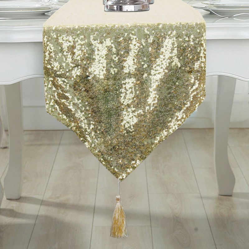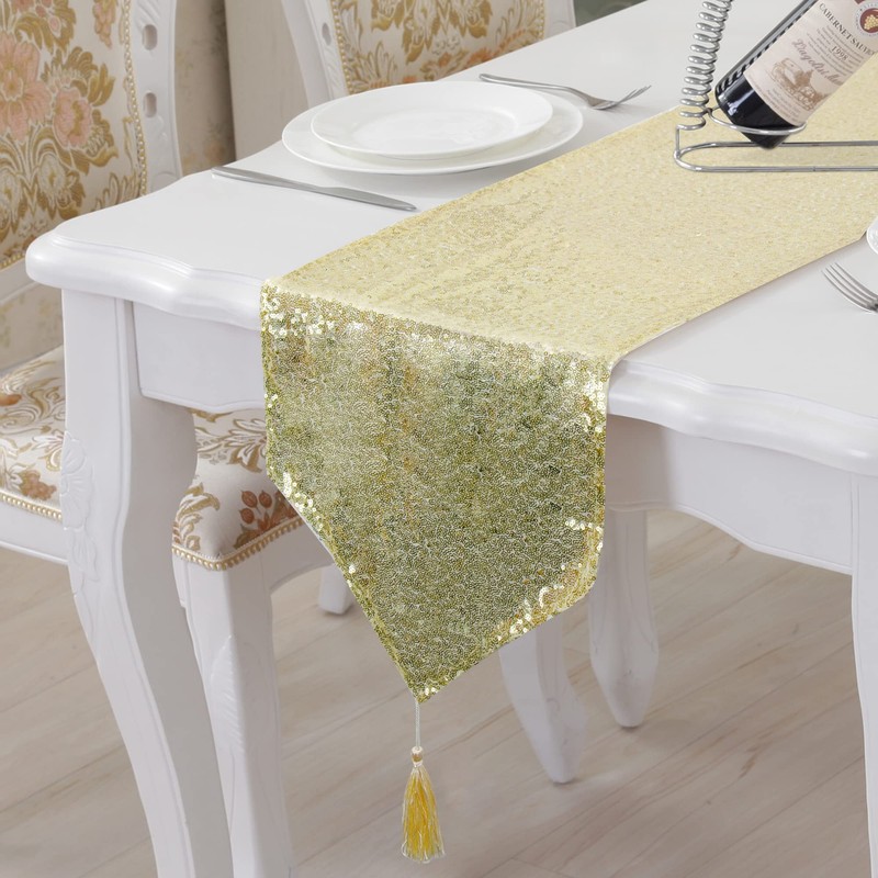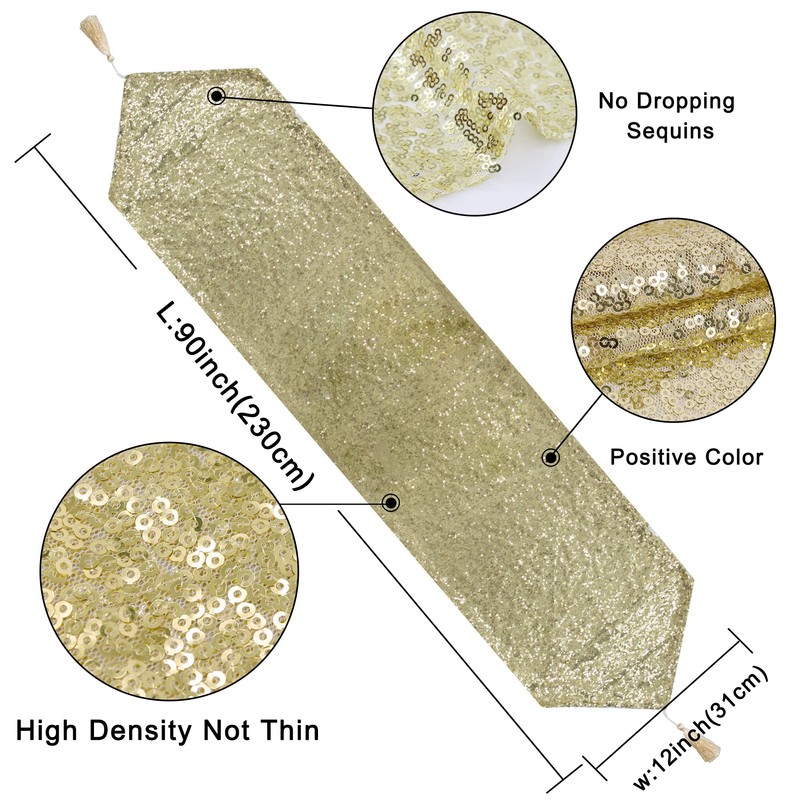 - Sequin Table Runner: Made of high density sequin fabric,countless sparkle sequins on mesh fabric, the table runners are not see through.