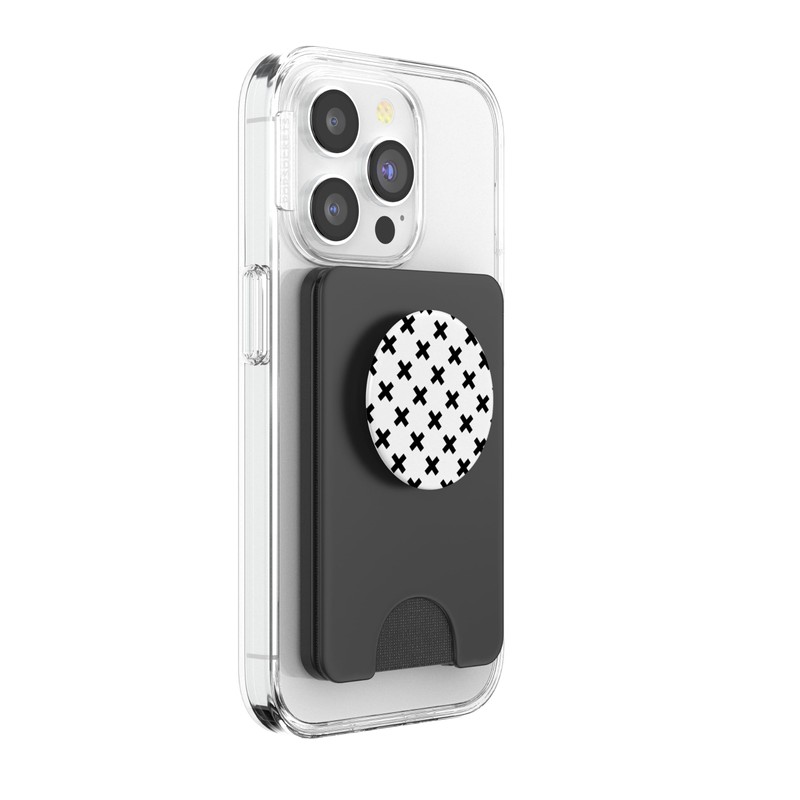 Timeless White Black Plus Cross Scandinavian Pattern PopSockets PopWallet for MagSafe