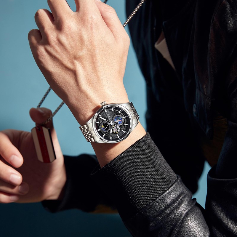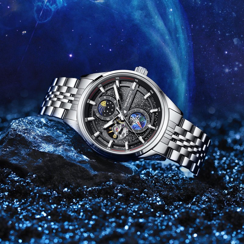 - 1.Metal carving, three-dimensional lunar phase, 3D gold carving, concave and convex lunar phase, with the moon sea and crater in front of you,The 316L precision steel watch case follows the rules, design, precision machining, and production process of 193 processes, and after 32 hours of processing and carving, it condenses into a thin watch case on your wrist.