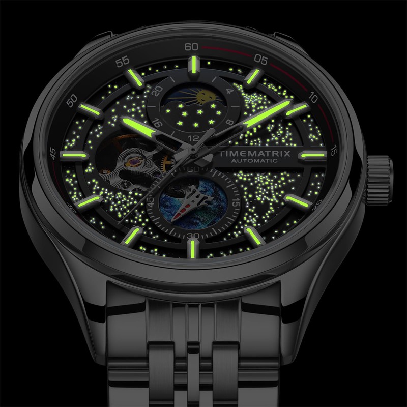 TIMEMATRIX Time Matrix Men's Space-TIME Series Automatic Watch (Model: TMX6011, Black)