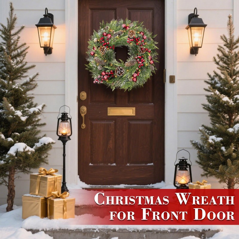 - Premium Quality Materials: The Christmas door wreath features a natural plant base, no worry about environmental damage; The high-quality branchs are waterproof, flame-retardant, making Christmas wreaths for windows safe for families with kids and pets