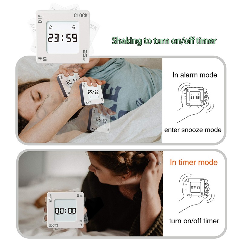 • You can also set the time for 5-60 minutes to ring again in the alarm mode. When the alarm sounds, you do not need to press the alarm button, just shake the product to automatically stop the ringing state, it will remember the timer setting time, So that it can be used next time