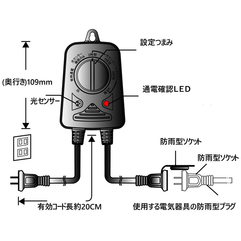 Timer Outlet, Timer with Light Sensor, Waterproof, Rainproof, Auto On, Repeat, 2 Hours, 4 Hours, 6 Hours, 8 Hours, Freely Off Time, Outdoor, Automatic Lighting, Decorative Light, Garden Light, Entrance Light, Security Light, Lighting, Cap Included