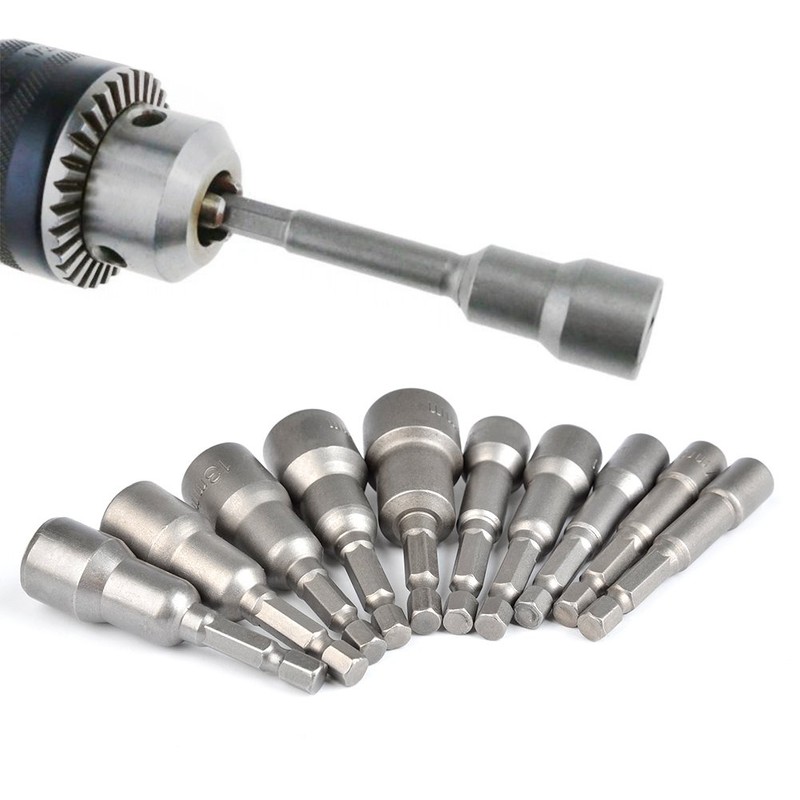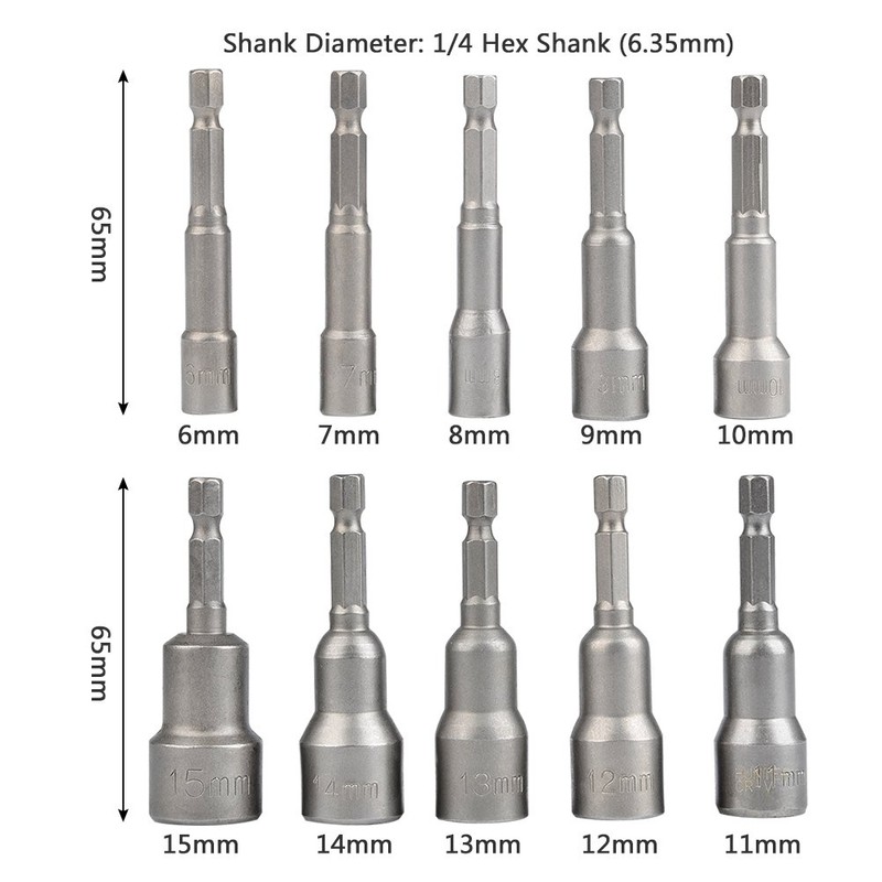 TIMESETL 6-15mm Magnetic Nut Setter Driver Drill Bit Set 1/4 inch Hex Shank Quick Change Metric Nut Driver Set - 10pcs