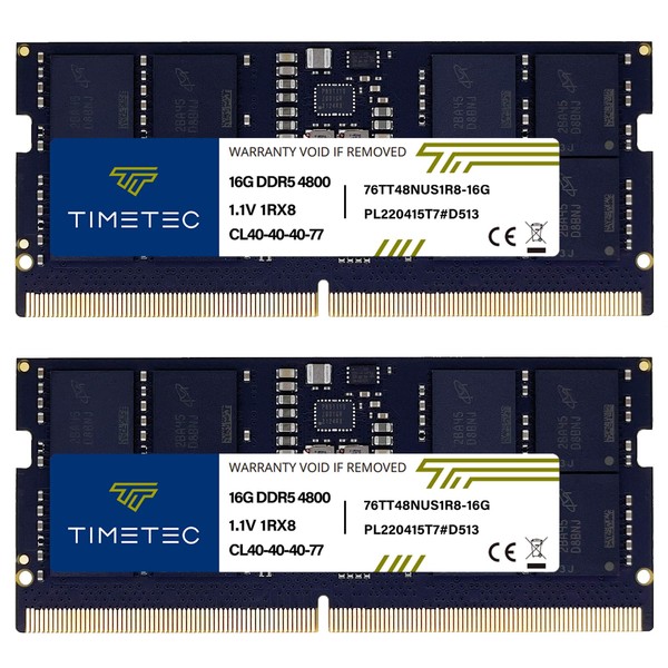 Timetec 32GB KIT(2x16GB) DDR5 4800MHz PC5-38400 Unbuffered Non-ECC 1.1V CL40 1Rx8 Single Rank 262 Pin SODIMM Laptop Memory RAM Module Upgrade (32GB KIT(2x16GB))