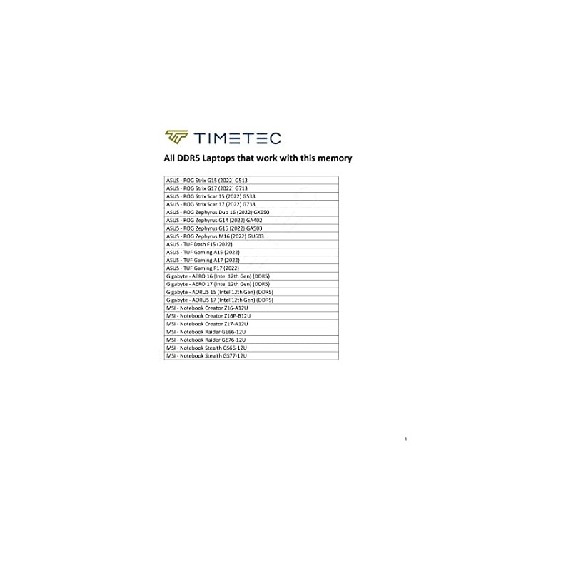 Timetec 32GB Kit(2x16GB) DDR5 4800MHz PC5-38400 Unbuffered Non-ECC 1.1V CL40 1Rx8 Single Rank 288 Pin Memory RAM Module Upgrade (32GB Kit(2x16GB) SODIMM)
