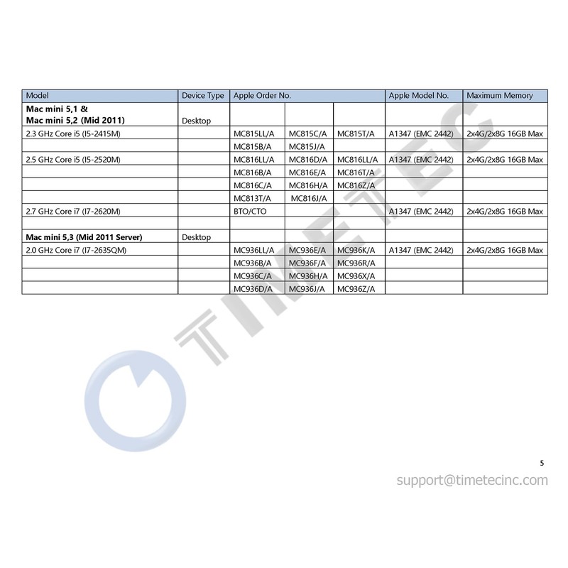 • Compatible with Apple Mac Mini - Mid 2011 - MacMini5,1 MacMini5,2 MacMini5,3