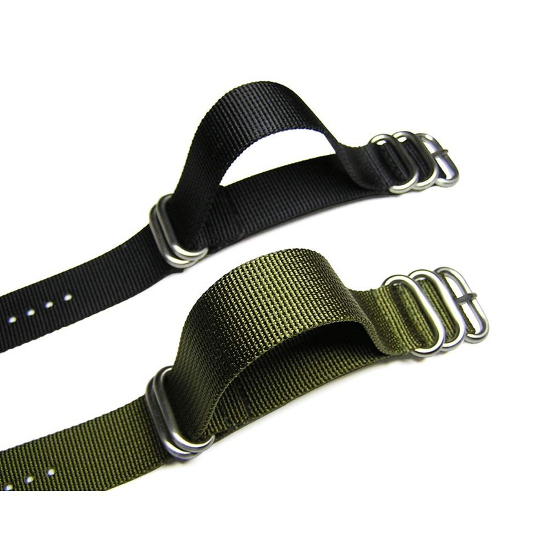 TIMEWHEEL® 20mm Premium Zulu 4 Ring Black Nylon Watch Band Strap