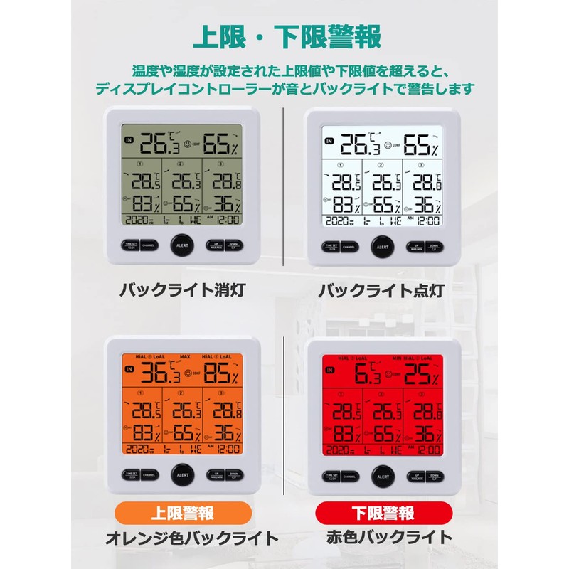 - (Indoor and Outdoor Sensor) Remote sensor for both indoor and outdoor use; Maximum communication distance of 328.4 ft (100 m), effective distance of 98.4 ft (30 m). Automatically sends temperature and humidity measurements in 4 locations using the child sensor It is useful for managing your family's health, preventing the flu and colds, as well as keeping your skin moisturized by checking the room for dry, as a countermeasure against mold and heatstroke