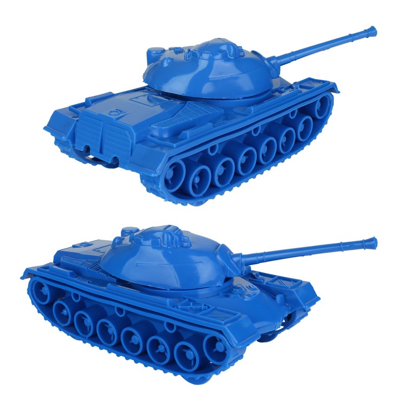 The Tim Mee Toy Patton PlatoonTank Division is ready for back yard deployment. These #729 M48 Patton Tanks are proudly manufactured in the United States and available in this 3 piece set. Each tank features a turret that rotates, measures 6.5 inches long and is approximately 1:48 scale. Made from slightly stiff blue color HDPE plastic with lots of crisp detail and very little flashing.