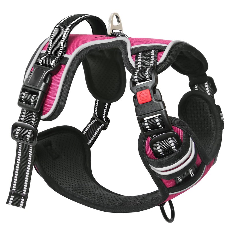 • 【4 Ways Adjustable Straps】The fit of this pet harness can be completely customized for your pet using the slide adjusters at the chest and neck.You can use its 2 neck straps and 2 chest straps to create a Perfect Fit for your dog with some room of growth. No worries about slipping out or choking.
