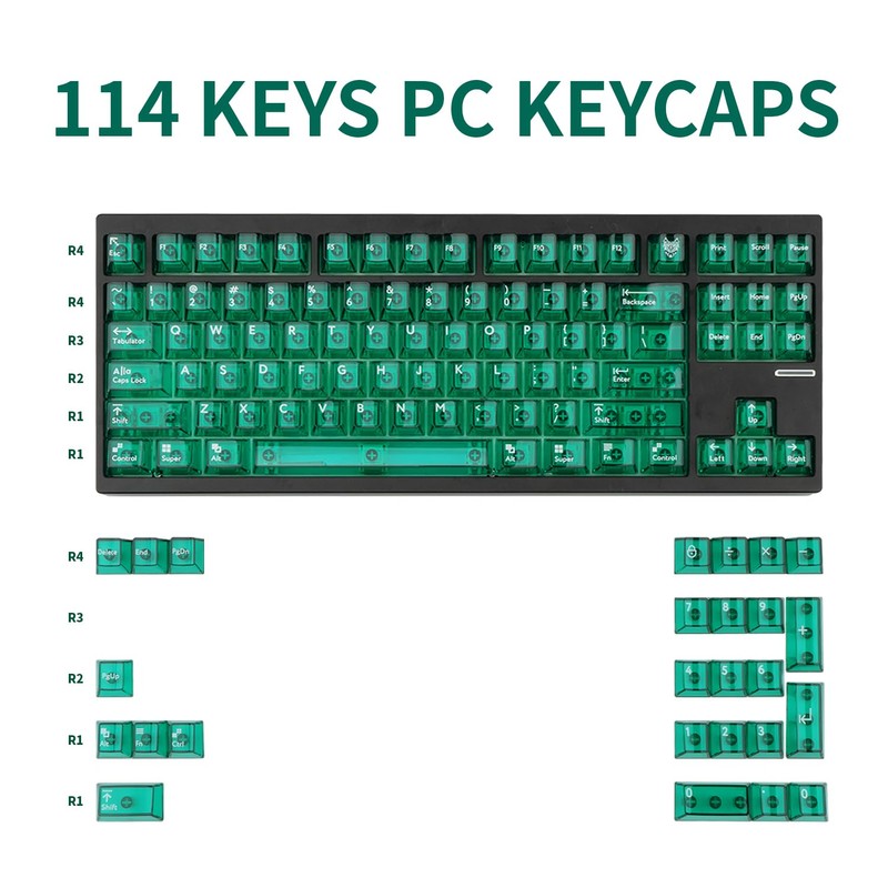 - Wide Compatibility: The 114-key green clear keycap set can cover most popular mechanical keyboards, fit for any size keyboards, such as 61/64/68/75/84/87/96/980/100/104/108 custom mechanical keyboards, fit for cherry mx switches or any gaming keyboards with “+” shaped switches, this is the best way to make your keyboard more comfortable. shaped switches for gaming keyboards, it's a good choice for your customized keyboard