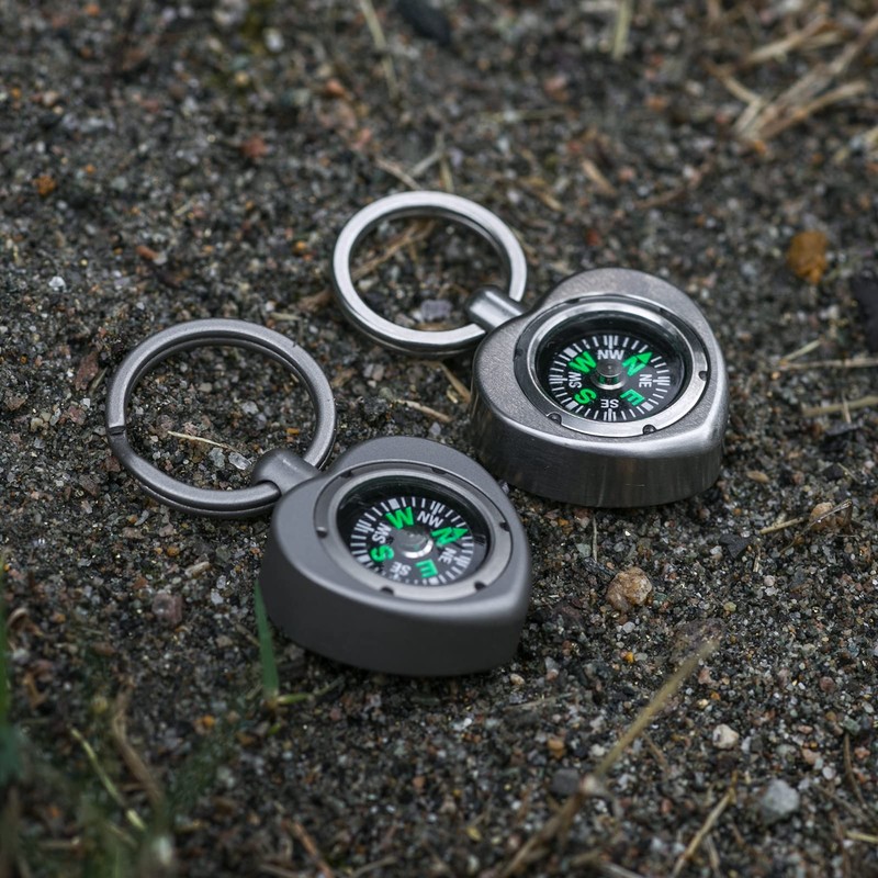 TIMULTI Titanium Compass, Compass, Lightweight, Waterproof, For Outdoor Use, Compass Guide, Portable Convenient Item, Present (Compass + 0.7 inch (18 mm) Key Ring)