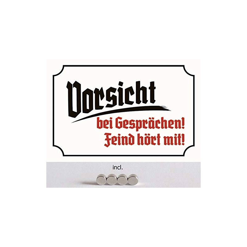 Tin Sign 20 x 30 cm Curved Including 4 Magnets Vorsicht bei Gesprächchen Feind hört mit Metall Decorative Gift Sign