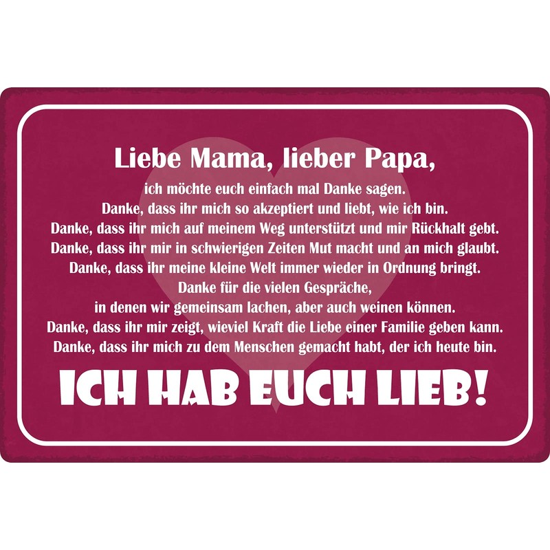 Tin Sign 20 x 30 cm Curved Mum Dad Ich hab euch liebb Saying Sayings Decorative Gift Sign
