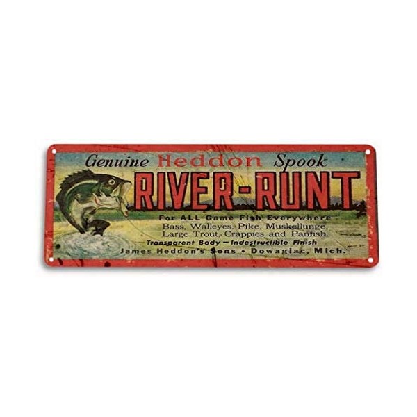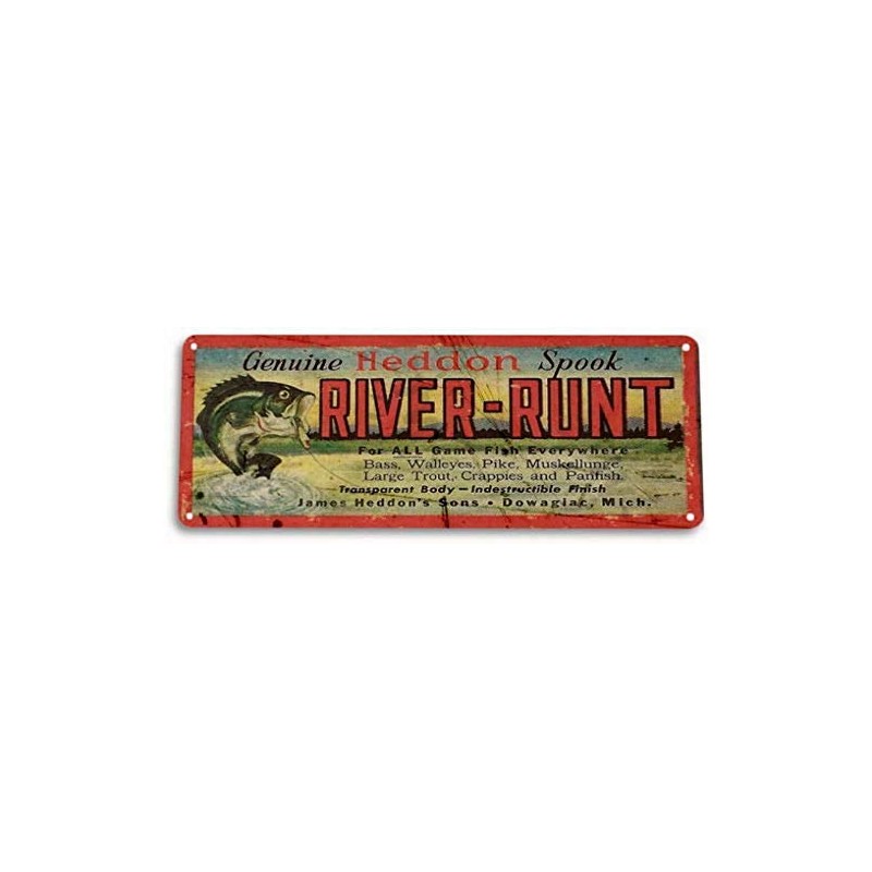 TIN Sign River Runt Lure Fishing Fish Bait Marina Rustic Fish Metal Decor