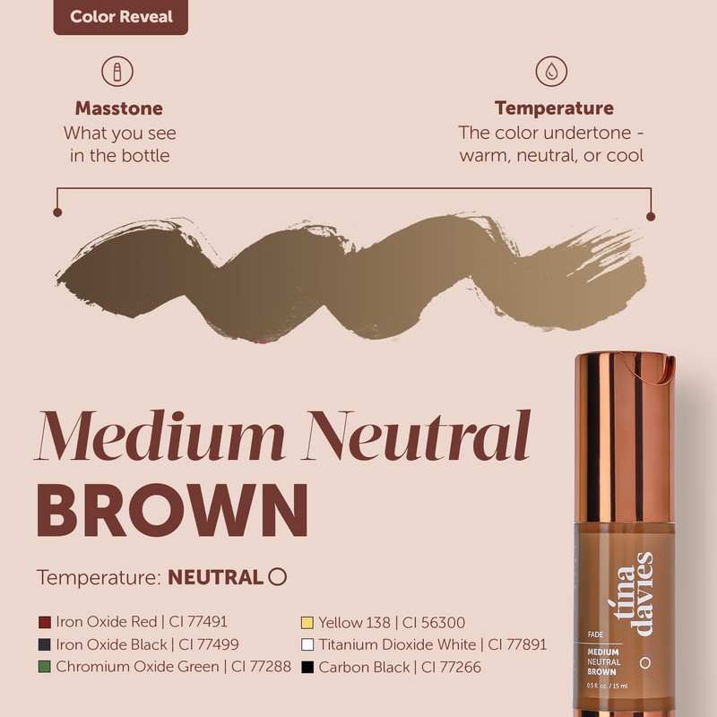 Tina Davies FADE Eyebrow Pigments, Medium Neutral Brown 15ml