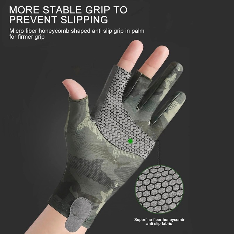 Men's Camo Fishing Gloves Outdoor UPF50+ Summer Cooling Thin 3 Fingerless Sun Protection Gloves for Kayaking Paddling Canoeing Hunting Cycling Driving