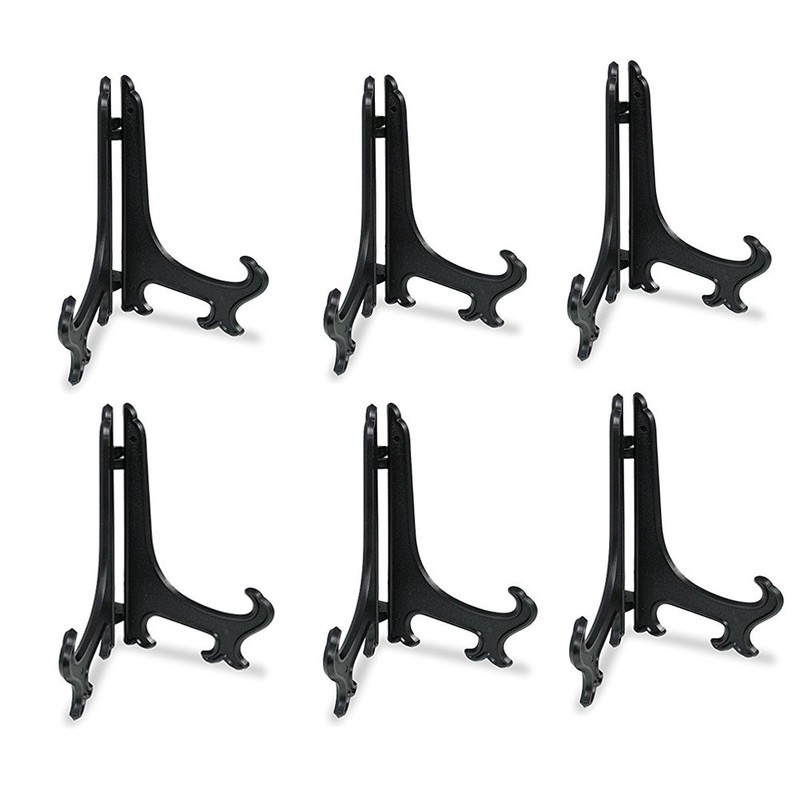 - Black Plastic Hinged Easel stands are a ideal for displaying items like photos, wedding placecards,plate,picture frame;