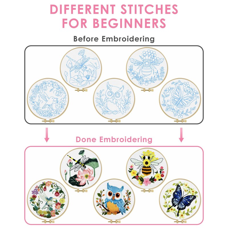 - 【Suitable for Beginners】This DIY embroidery style is simple and diverse, no complicated pattern design, suitable for beginners. The different stitch method that spark your creativity to a new pattern.